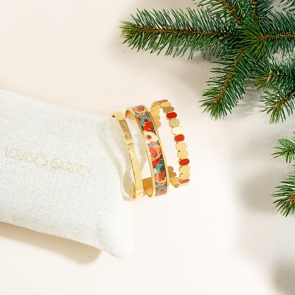 Notre bijouterie française de bracelets larges pour femme qui sont hypoallergéniques. Rêve d'évasion ? De végétation luxuriante ? Envie de promenades romantiques dans les jardins anglais ? Louise Garden vous présente un large choix de bracelets manchettes bohèmes avec des imprimés fleuris, des boucles d'oreilles et colliers longs. Grâce à notre site de bracelets larges, succombez au charme d'un bracelet coloré tendance pour femme.